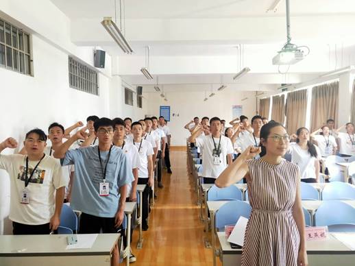 2020年7月17日,体育与健康学院在301教室为28名新团员举行入团宣誓仪式。学院党委书记周成勋、党委副书记王燕妮、副院长余刚,以及老团员代表共50余人参加活动,院团委书记杜治芬主持。