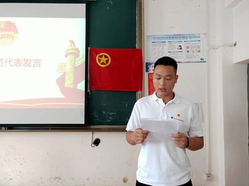 严肃而神圣的仪式深深感染着在座的每一位新老团员。新团员代表文川在发言中表示,左胸上的团徽不是装饰品,而是一份沉甸甸的责任,作为共青团员要迈好青春的第一步,让胸前的团徽熠熠生辉。老团员代表张家慧分享了自己入团时的心境,她希望新团员能牢记入团誓词,以实际行动践行热爱组织的誓言,成为一名合格的共青团员。