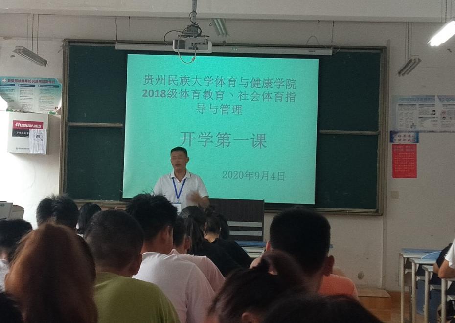 为做好学生思想政治教育工作,引导学生尽快适应开学学习生活,以积极主动、乐观向上的健康心态投入到学习、生活中,按照学校《关于在疫情防控期间进一步做好返校学生“开学第一课”的通知》要求,根据《贵州民族大学体育与健康学院2020年秋学期“开学第一课”工作方案》安排,体育与健康学院5名领导分别到联系班级开展“开学第一课”教育