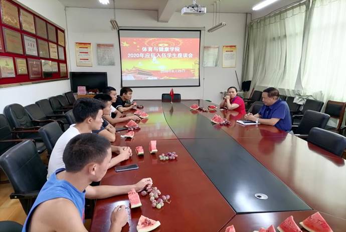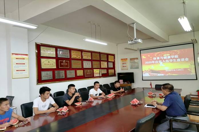 2020年8月29日下午14时,体育与健康学院召开2020年应征入伍学生座谈会。学院5名即将参加役前集训的学生参加座谈,学院党委书记周成勋出席出席会议,党委副书记王燕妮主持会议。