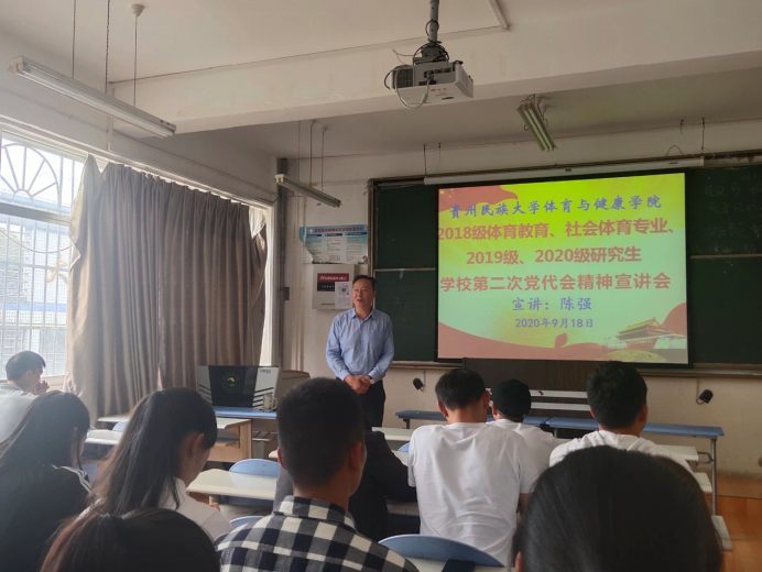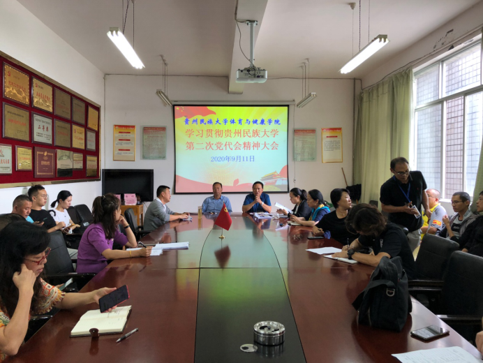 根据《关于认真传达学习贵州民族大学第二次党代会精神的通知》精神,体育与健康学院高度重视,及时制定贯彻落实工作方案,成立宣讲工作领导小组,采取集中学习和专题宣讲相结合,座谈研讨为辅的方式,深入开展学校第二次党代会精神的学习。