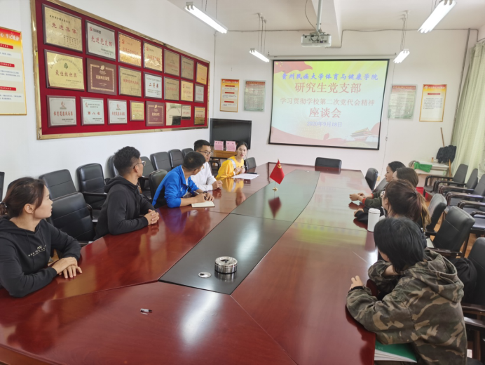 9月18日下午,研究生党支部召开学习贯彻学校第二次党代会精神座谈会,党支部书记叶梦颖主持座谈会。