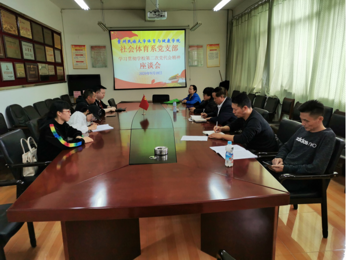 9月18日下午,教工社会体育系党支部召开学习贯彻学校第二次党代会精神座谈会,党支部书记任廷主持座谈会,党委书记周成勋、副院长黄咏以普通党员身份参加了座谈。