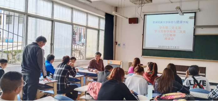 9月18日下午,学生第二党支部召开学习贯彻学校第二次党代会精神座谈会,党支部书记宗春林主持座谈会。