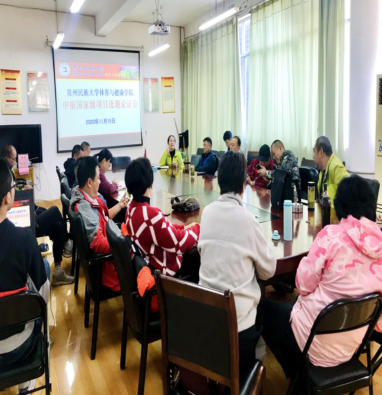 2020年11月15日,在体育与健康学院301会议室召开申报国家社科基金选题论证会。学院部分人文社科类博士、具有高级职称教师、青年教师、学科带头人、学术带头人参加选题论证会,分管科研副院长黄咏主持会议。