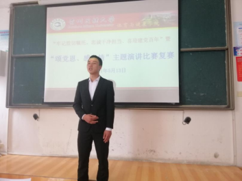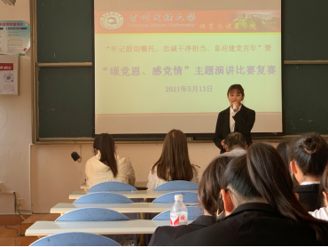 为丰富学院党史学习教育载体和内容,引导广大青年学生颂党恩、感党情,坚定理想信念,牢记初心使命,勇于担当作为,进一步增强“四个意识”、坚定“四个自信”、做到“两个维护”。体育与健康学院于2021年5月13日下午3点在301教室举办“牢记殷切嘱托、忠诚干净担当、喜迎建党百年”暨“颂党恩、感党情”主题演讲比赛。来自学院各年级的研究生、本科生共计20余人参加比赛,学院党委书记周成勋、院团委书记杜治芬、政治辅导员唐世丽、杨佳丽、院学生会执行主席刘宗彪担任比赛评委。