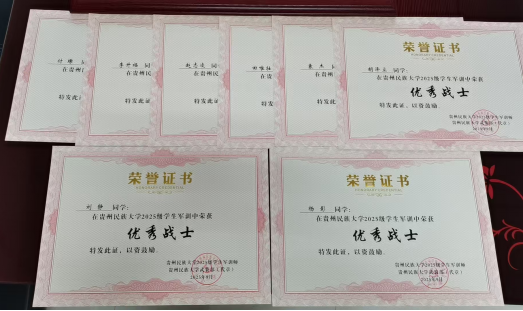 金秋送爽,丹桂飘香。在这满载收获与希望的季节里,我校2025级学生军训工作圆满落下帷幕。在本次军训中,体育与健康学院全体参训新生以昂扬的斗志、顽强的意志、严明的纪律和团结协作的精神,奋勇争先,表现卓越,最终在众多连队中脱颖而出,被贵州民族大学2025级学生军训师授予“优秀连队”的荣誉称号,付璨、李升福、赵志凌、田唯壮、袁杰、胡泽立、刘静、杨影8名同学荣获“优秀战士”称号。同时,我院政治辅导员、2025级班主任、带队教导员艾薇老师因在军训期间出色的组织管理、深入细致的思想引导和忘我投入的工作精神,被评为“优秀教导员”。